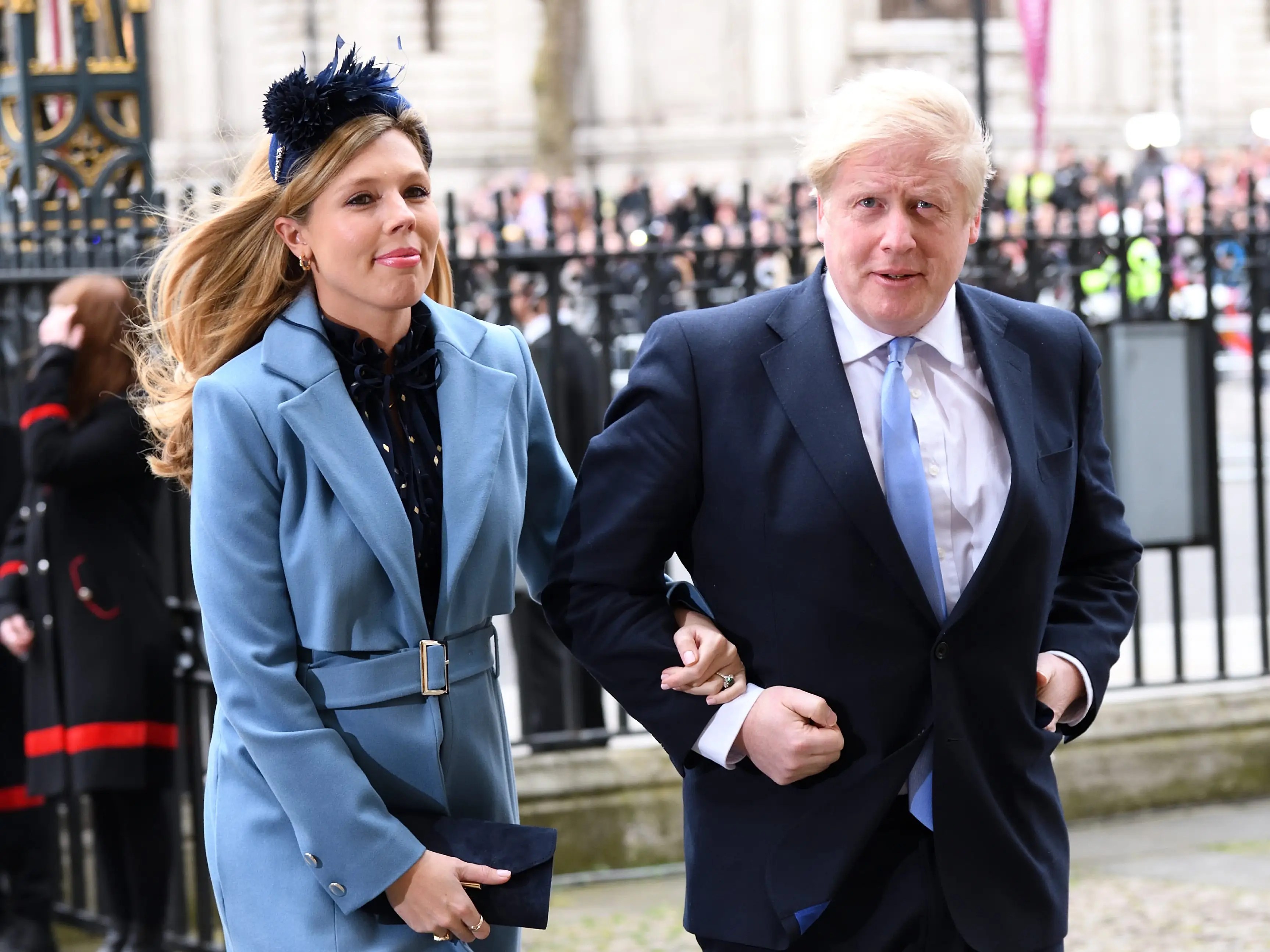 In this monday, march 9, 2020 file photo britain's prime minister boris johnson and his partner carrie symonds arrive to attend the annual boris johnson. British prime minister boris johnson and his wife carrie are expecting a second baby, british media reported on saturday.